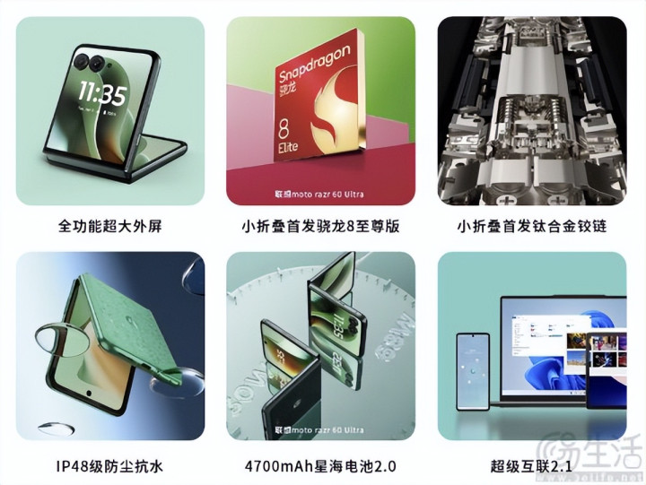 作为参考,目前moto旗下市场定位最高的razr 60 Ultra采用了一块具备最高165Hz刷新率、4500nit峰值亮度的7英寸内屏,以及同样支持165Hz高刷、3000nit峰值亮度的4英寸外屏,搭载骁龙8至尊版主控、以及最高16GB+1TB的存储组合,并提供4700mAh电池,支持68W有线和30W无线快充。影像方面所配备是5000万像素前摄,以及由5000万像素主摄组成的后置双摄模组。